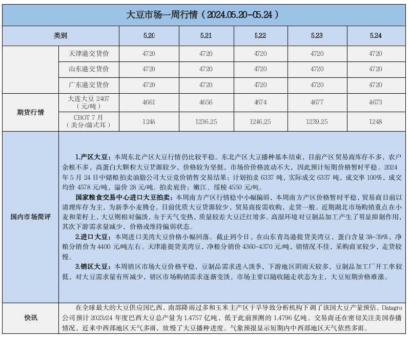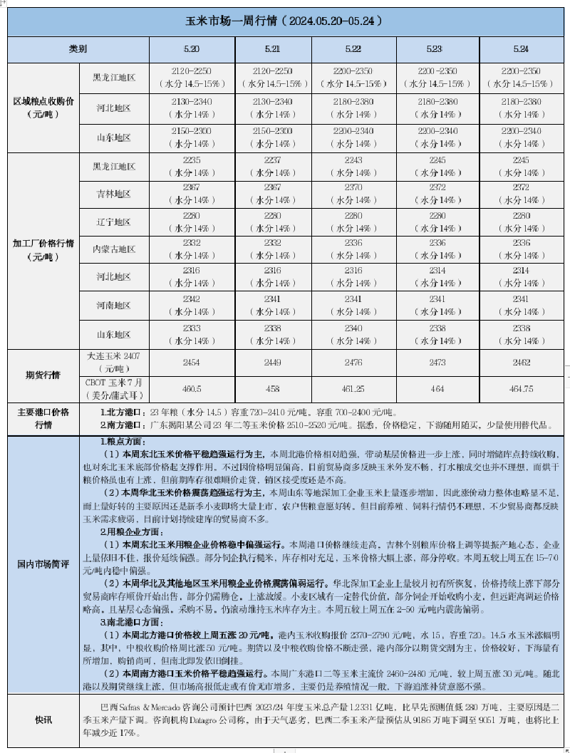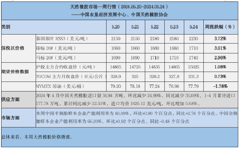 天然橡膠、大豆、玉米市場一周行情(2024.05.20-05.24)