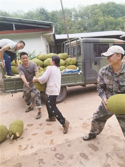 將菠蘿蜜裝車。 通訊員 李曉鳳/攝