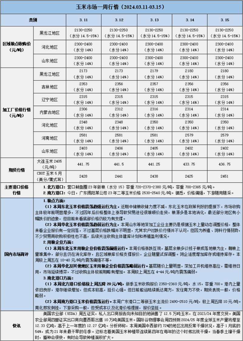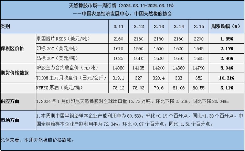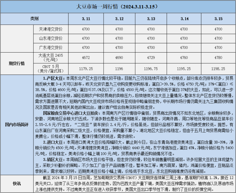 天然橡膠、大豆、玉米市場一周行情(2024.03.11-03.15)