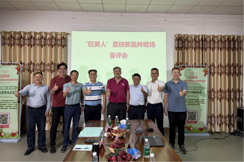 根據“巨美人”荔枝新品種選育單位華南農業大學園藝學院、中國熱帶農業科學院南亞熱帶作物研究所、陽江市農村盛宴農業發展有限公司和深圳職業技術大學的申請,2025年6月11日,全國熱帶作物品種審定委員會組織鑒評專家組,在廣東省陽江市陽西縣荔枝基地對申報的“巨美人”荔枝新品種進行現場鑒評。