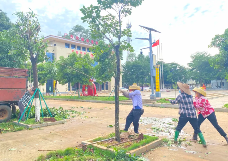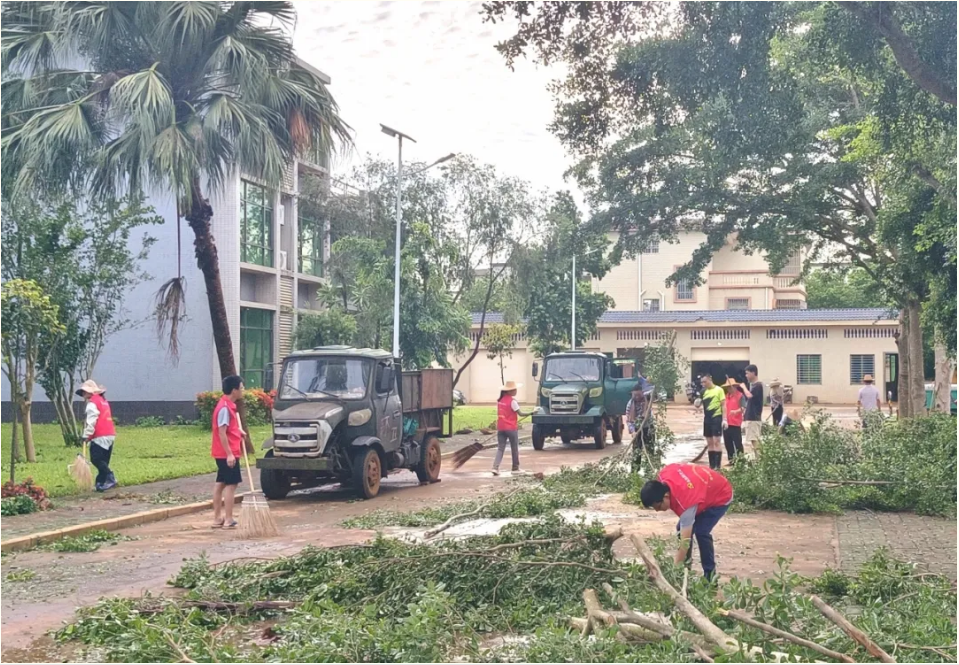 五一農場:做好橡膠中小苗扶苗和倒伏甘蔗的扶苗;清理路障保障居民出行安全;清掃環境衛生恢復轄區干凈整潔;協調保險公司啟動報損理賠工作。