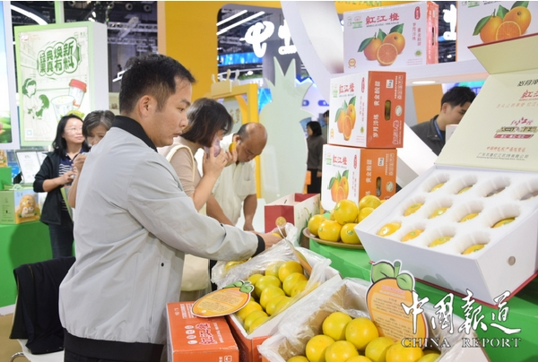 金光熠熠的紅江橙,如同南國陽光下一顆顆寶石;甜蜜滿溢的廣墾菠蘿,仿佛大自然的甘露凝結;香氣撲鼻的梅隴香稻米,宛如田野間晶瑩剔透的珍珠;香氣濃郁的名富番石榴,透露著熱帶果園的秘密……踏入“廣東農墾”展區,一幅豐收的畫卷躍然眼前,色彩斑斕的水果和稻米交織出一幅令人垂涎欲滴的農業盛宴。每一件展品都像是精心雕琢的藝術品,不僅飽含大自然的饋贈,更蘊含著農墾人的智慧與辛勤。