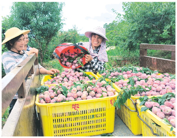 農戶現場采收三華李。