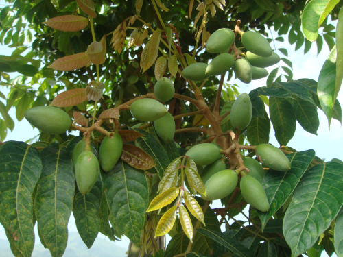 靈峰橄欖”“清欖2號”橄欖是從福州地區(qū)的長營橄欖實(shí)生群體中選育出的鮮食新品種,這兩個(gè)品種綜合性狀表現(xiàn)良好,適應(yīng)范圍廣。其中“靈峰橄欖” 為晚熟品種,其果肉質(zhì)地脆、化渣、回甘好、風(fēng)味濃郁,鮮食品質(zhì)優(yōu)異;“清欖2號”為中熟品種,果肉質(zhì)地脆、化渣、澀味淡,鮮食品質(zhì)良好,且豐產(chǎn)性高。經(jīng)現(xiàn)場測產(chǎn),“靈峰橄欖”高位嫁接9年后,平均單株產(chǎn)量84.8 kg,折合畝產(chǎn)1611.2 kg;平均單果重8.0 g,可溶性固形物含量12.5%,可食率80.7%。“清欖2號”高位嫁接9年后,平均單株產(chǎn)量94.2 kg,折合畝產(chǎn)1789.8 kg;平均單果重7.5 g,可溶性固形物含量11.4%,可食率78.3%。目前,“靈峰橄欖”“清欖2號”橄欖已在福建、廣東、廣西等橄欖產(chǎn)區(qū)推廣應(yīng)用。