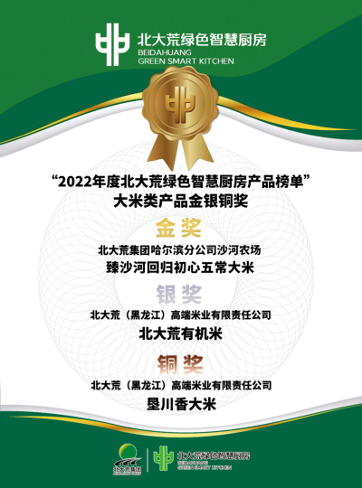 北大荒綠色智慧廚房產品榜單大米類金銀銅獎