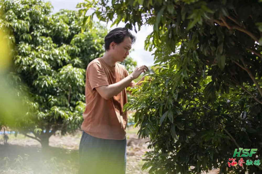 紅明農場公司旗下海南荔海實業有限公司副總經理李精華拿著手機和筆記本來到這里,一一觀察每株荔枝樹,記錄它們的生長情況。