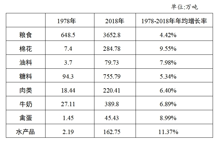 表1:1978-2018年農墾糧食和主要農產品產量和年均增長率