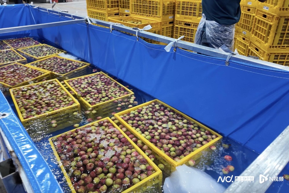 小蜂嗡嗡公司內,荔枝正進行水冷降溫。南都見習記者 陳宇溪 攝