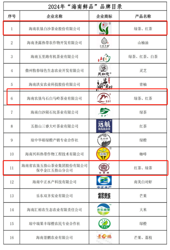近日,海南省農業農村廳公布了2024年“海南鮮品”品牌目錄名單,海墾集團旗下的茶葉品牌“白沙牌”“金鼎牌”“白馬嶺牌”,“昌農牌”大坡胡椒、“海津益佳”雞蛋5個品牌入選2024年“海南鮮品”品牌目錄。
