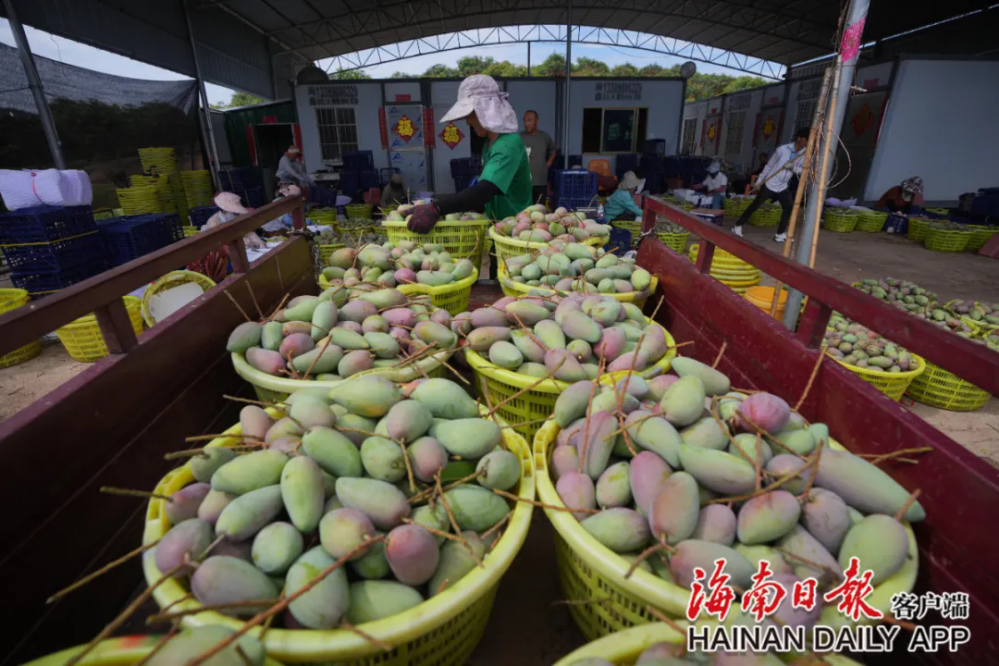 5月13日,樂東黎族自治縣黃流鎮(zhèn)新建村芒芒噠農(nóng)民種養(yǎng)殖專業(yè)合作社芒果基地一派繁忙景象。果園深處,綠油油的芒果樹上吊著一個(gè)個(gè)誘人果子,采摘工人們忙碌地挑選著成熟的貴妃芒,動(dòng)作熟練而有序。