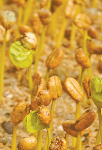 種苗繁育基地的育苗棚內,空氣中蒸騰著水汽,催芽成功的咖啡苗簇擁在一起,伸展著圓潤可愛的葉子。一群年輕人身著實驗服,正在用濕潤的沙土平整苗圃,撒下新的咖啡種子。“為產區培育咖啡苗,雖然辛苦,但這是在為咖啡產業‘打地基’。”德宏熱作所研究員王靜敏,是個90后“新農人”。