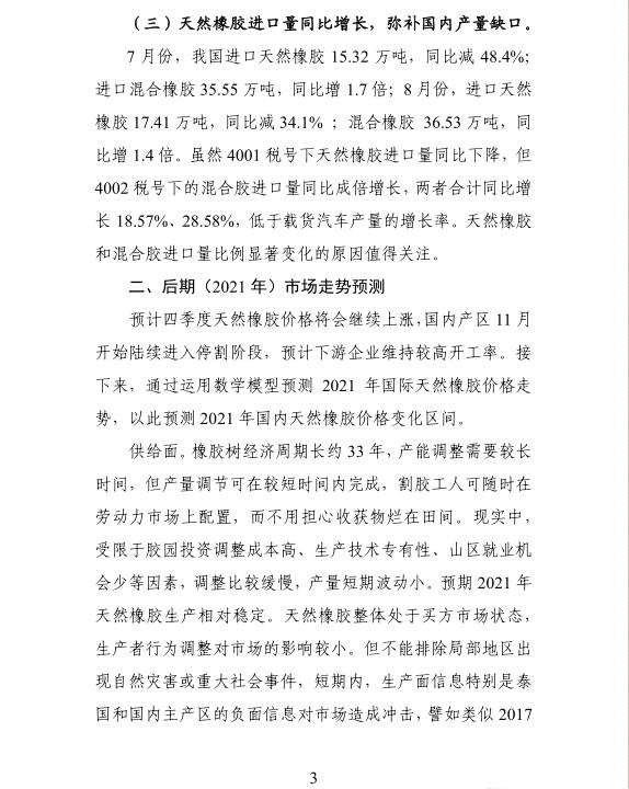 2020年三季度天然橡膠市場形勢回顧和后期展望