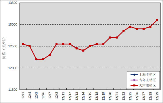國內(nèi)主銷區(qū):12月,國產(chǎn)全乳標準膠上海市場平均價格12614元/噸,環(huán)比下跌366元/噸,最高價為13100元/噸,最低價為12200元/噸;青島市場平均價格12614元/噸,環(huán)比下跌366元/噸,最高價為13100元/噸,最低價為12200元/噸;天津市場平均價格12614元/噸,環(huán)比下跌366元/噸,最高價為13100元/噸,最低價為12200元/噸。