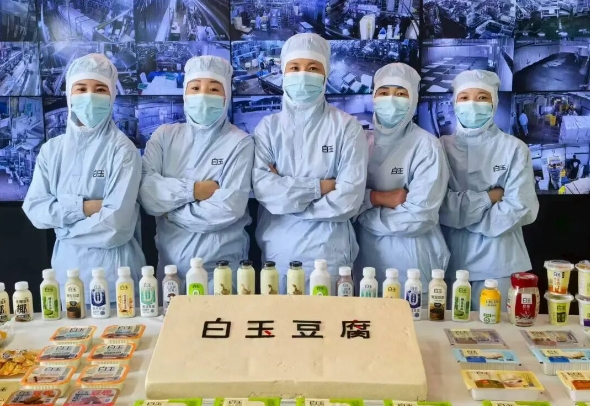 在北京,最知名的豆腐品牌當(dāng)屬“白玉”。北京白玉食品有限公司每天可生產(chǎn)近30萬(wàn)盒的盒裝豆腐,北京市場(chǎng)商超系統(tǒng)覆蓋率達(dá)90%,并實(shí)現(xiàn)對(duì)北京各大農(nóng)貿(mào)市場(chǎng)的全覆蓋。從泡豆、磨漿、煮漿、點(diǎn)腦、壓制到成型,21道自動(dòng)化工序都遵循傳統(tǒng)技藝,展現(xiàn)了“白玉”的初心與追求。