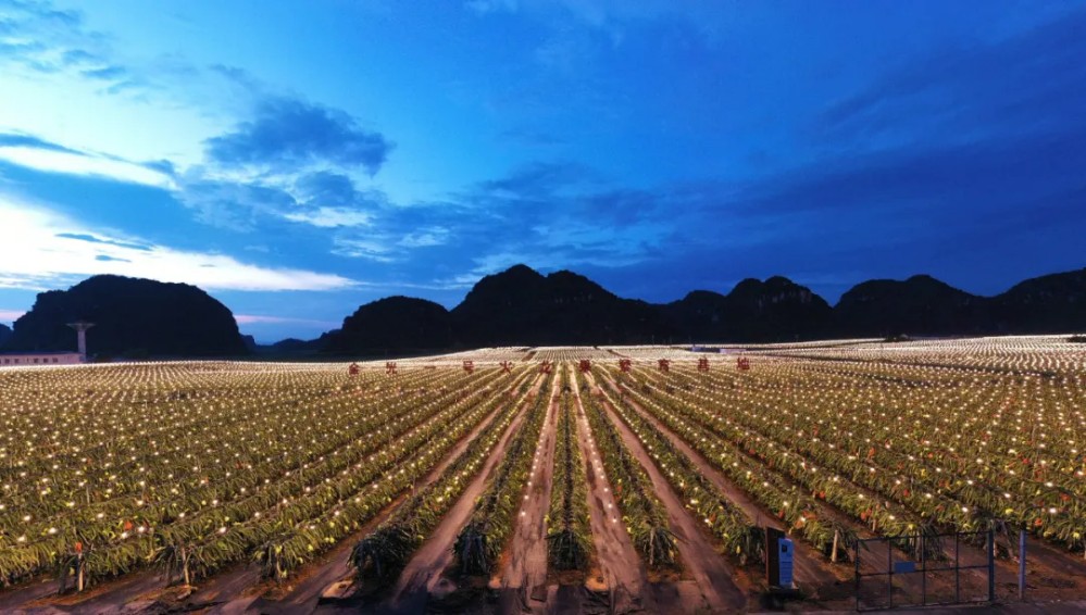 補光技術成為增產增收的“關鍵抓手”。通過科學補光,火龍果實現提前上市,增收一批補光春果,銷售單價達3.4元/斤,目前補光區畝產最高超5000斤,產量效益雙提升。
