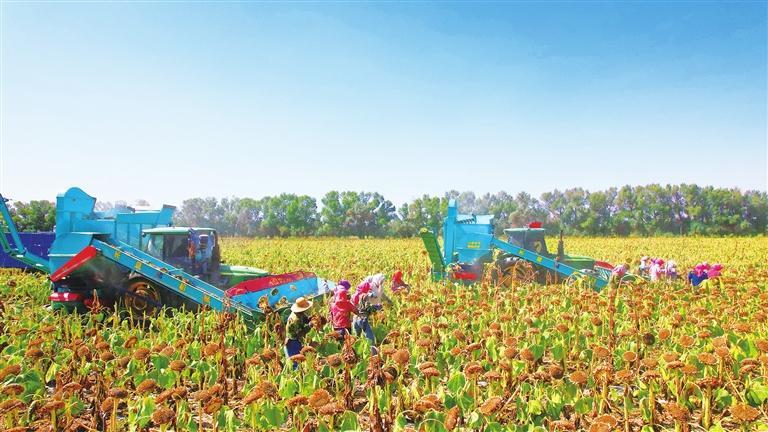 甘肅農墾飲馬農場向日葵豐收。完代可