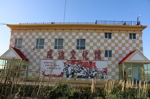 一八六團戍邊文化館位于一八六團六連連部,緊鄰諾亞堡民兵哨所,離一八六團團部五公里,戍邊文化館為框架結構、局部三層、高度為9米,建筑面積為400平方米。2011年開始建設,2014年5月6日裝修布展工程全面竣工,展廳面積280平方米,陳展實物50件,年均接待2000人次。2017年史館被授予“兵團廉政教育基地”,2018年被授予“十師民族團結進步教育基地”。