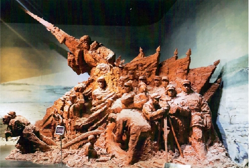 九三博物館將幾代北大荒人用汗水、淚水、血水創造的歷史,和七十多年取得的物質文明和精神文明的豐碩成果凝固、濃縮于其中。在二樓最顯眼處設立了農墾事業奠基人——王震銅雕塑,王震曾于1954年和1957年先后兩次視察九三。二樓還有表現幾代北大荒人開發建設九三的大型雕塑《大荒脊梁》,是墾區博物館室內最大的雕塑。
