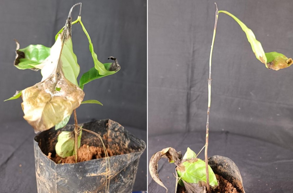 咖啡漆斑病是近年在苗圃咖啡幼苗上發生的新病害,可引起咖啡幼苗葉片脫落,嚴重時整株枯死。該病在云南咖啡各產區苗圃均有發生,發病率高達40%。高溫高濕有利于該病發生。目前正值高溫多雨季節,建議各監測站加強監測,指導咖農和種植企業開展監測防控。