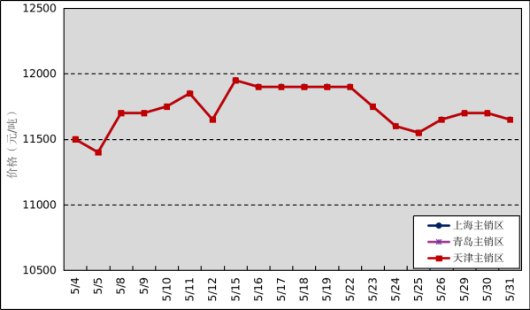 國內主銷區:5月,國產全乳標準膠上海市場平均價格11730元/噸,環比上漲385元/噸,最高價為11950元/噸,最低價為11450元/噸;青島市場平均價格11730元/噸,環比上漲385元/噸,最高價為11950元/噸,最低價為11450元/噸;天津市場平均價格11730元/噸,環比上漲385元/噸,最高價為11950元/噸,最低價為11450元/噸。