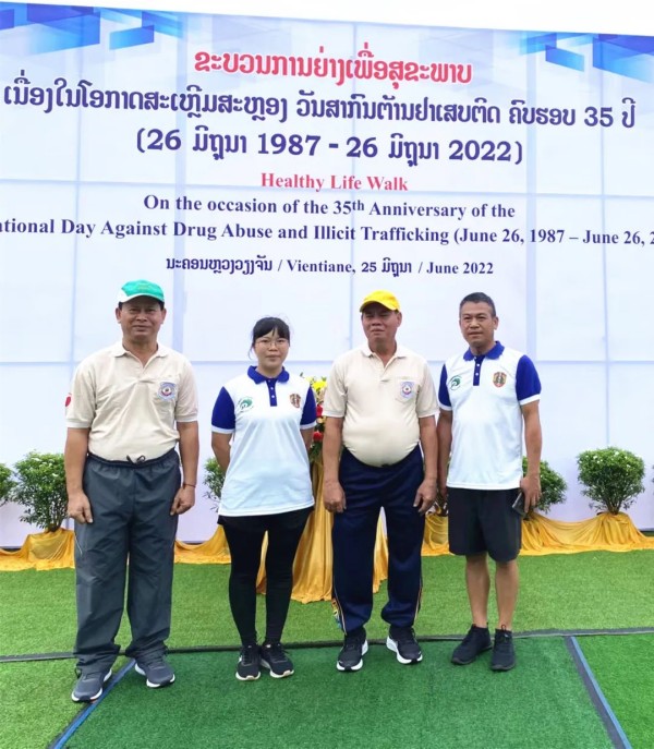 活動伊始,老撾人民革命黨中央委員、國家副總理、公安部部長維萊·拉坎豐強調中老兩國實施的替代種植為國際禁毒合作發揮了積極作用。他指出,替代種植企業積極推進替代種植產業的發展,為老撾的禁毒事業和經濟發展做出了積極的貢獻。希望相關企業對老撾禁毒工作能夠繼續關注,廣泛參與,大力支持,與老撾各級政府攜手,在老撾各地形成遠離毒品、珍愛生命的良好社會氛圍,為全球禁毒事業貢獻“老撾力量”。隨后,維萊·拉坎豐宣布“健康人生、綠色無毒、全民健步行”活動正式開始。