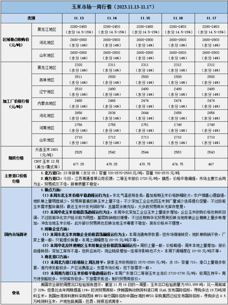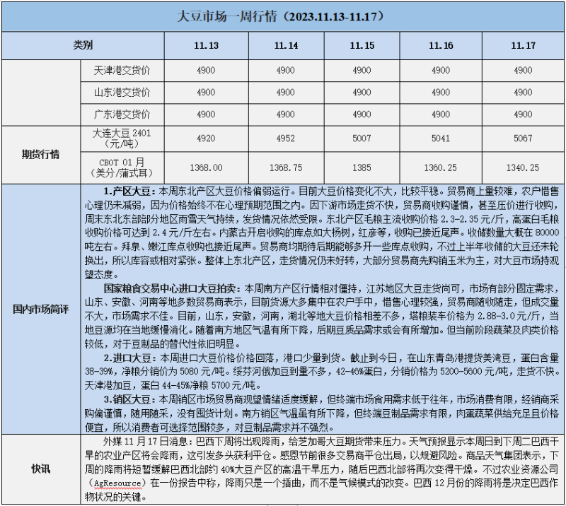 天然橡膠、大豆、玉米市場一周行情(2023.11.13-11.17)
