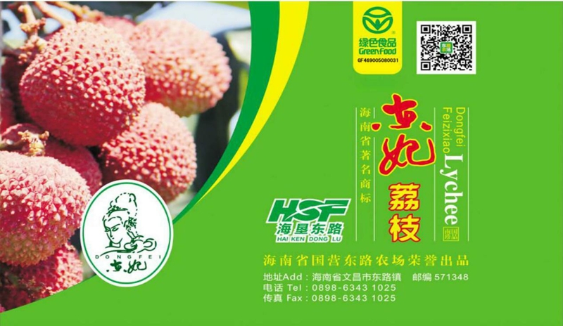 產品特色:荔枝生產是東路農場公司品牌主打產業之一,也是海南地區荔枝的重要產區之一。 “東妃”牌荔枝1992年從廣東東莞引進,現發展面積已達1.05萬畝,其中荔枝標準化基地696.6畝,土壤農藥殘留量、空氣質量、水源等指標均符合國家規定標準,利用“生物導彈”“高效多功能殺蟲平臺”等技術手段,防治荔枝害蟲,減少化學農藥的污染。2002年,注冊“東妃”牌荔枝商標,同年被海南省農業廳確認為無公害農產品產地認證,2008年通過中國綠色食品發展中心認定為“綠色食品”A級產品、獲得“海南著名商標證書”,2014年獲國家農業部產品質量安全中心“無公害農產品證書”,2015年被海南省農業廳認定為“海南名牌農產品”,2017 年榮獲良好農業(GAP)認證。