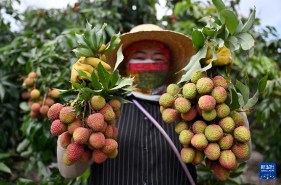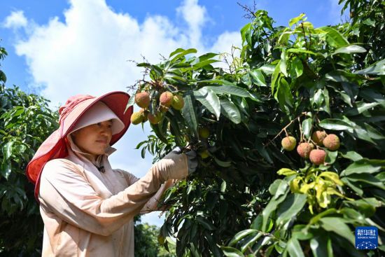5月22日,農民在海口市瓊山區(qū)三門坡鎮(zhèn)采摘荔枝。