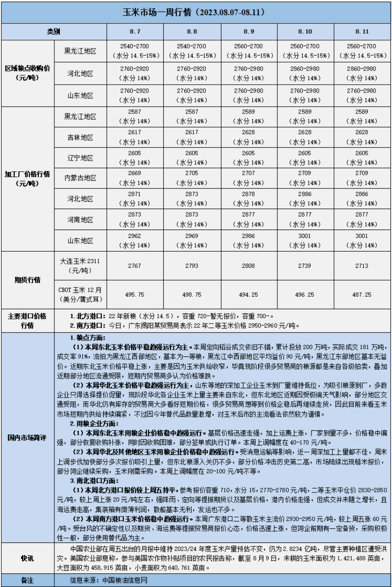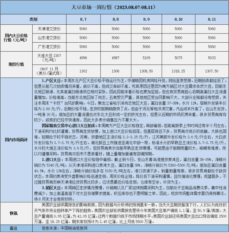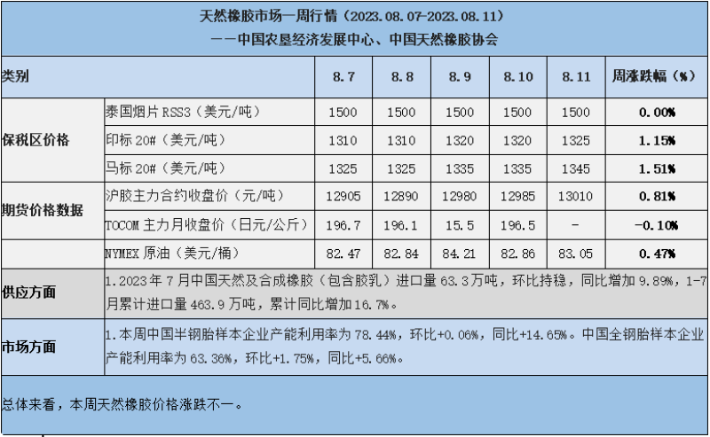 天然橡膠、大豆、玉米市場一周行情(2023.08.07-08.11)