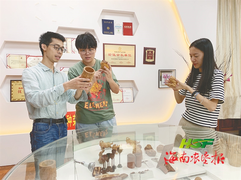 消費者正在選購海墾寶橡林產集團出產的木制工藝品。袁宇君 攝
