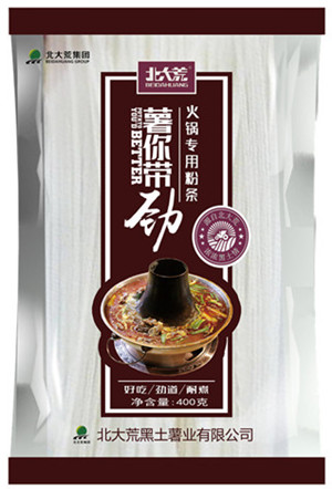 北大荒薯你帶勁粉條類產品:馬鈴薯粉條是將馬鈴薯粉碎研磨為粉狀后,通過一系列工藝制作而成的細長條狀食品,顏色多為白色,含有豐富的鈣、磷、鐵、鉀等礦物質及維生素C、維生素A及B族類維生素,口感爽滑、老少皆宜,有和胃、調中、健脾、益氣之功效。
