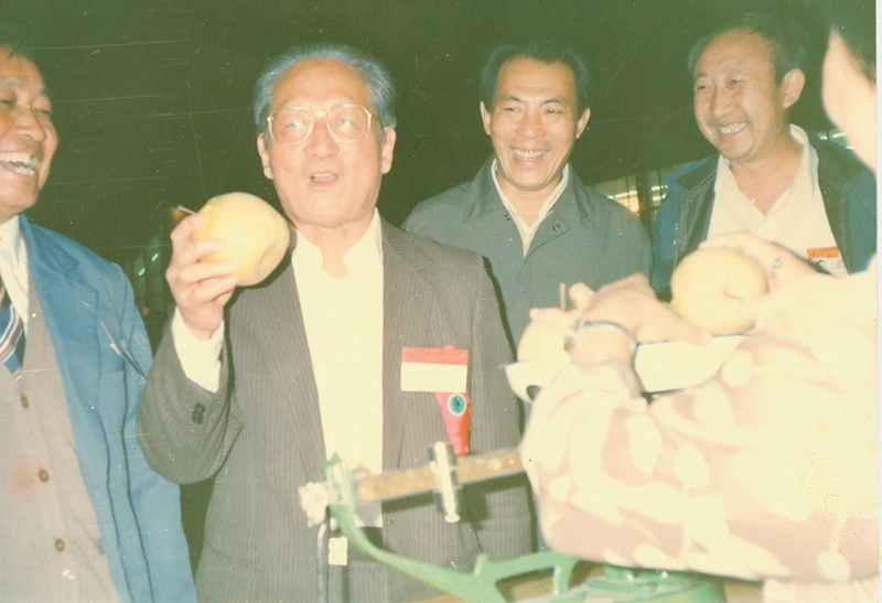 9月27日晚上7-10時,展銷會安排專賣展銷,主要是黨中央、國務院領導人和各部委辦負責人來展銷會參觀、購物。晚上八點多,何康等部領導先后來到安徽展銷點參觀。何康駐足碭山酥梨柜臺,隨手拿起一個金黃的酥梨在手心里掂量著,對陪同在旁的安徽農墾代表團團長周維成說道:“我來替你們宣傳。”安徽團工作人員手持照相機對著這個場面按下快門,留下本文開頭介紹的那個寶貴鏡頭。何康說過這句話之后,把梨子放回原處。呂清問碭山梨一個有多重,隨團的碭山果園場售貨員立即拿一個梨放在磅秤上,“一斤四兩重”,何康開懷大笑。