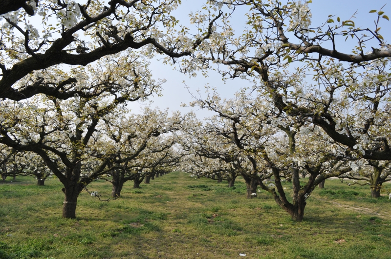 碭山,位于蘇、魯、豫、皖四省交界處,素有“世界梨都”之稱,每年陽春三月,春和景明時節,碭山大地萬物復蘇,故黃漲綠,數十萬畝梨花吐蕊綻蕾,競相盛開。放眼環顧,雪堆云涌,銀波瓊浪,沃野千頃,一片花海,景象蔚為壯觀。到八月中秋,遍地金珠墜地,碭山又是果的世界,田間地頭又成了果山果海,到處人歡車鳴,芳香鋪地。置身其間,徜徉園圃,品嘗酥梨似蜜之甘甜,令人樂不思歸,流連忘返。始建于1955年的安徽農墾碭山果園場就坐落在這里。