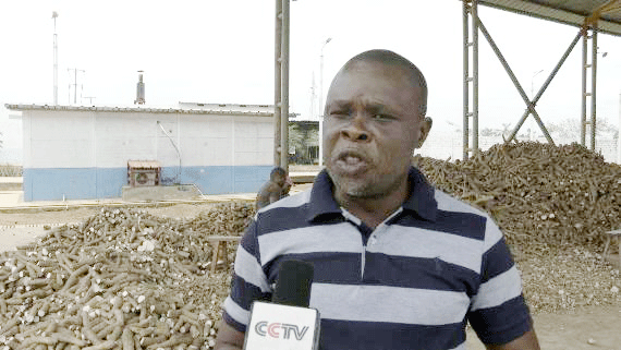 木薯粉加工廠廠長曹仁忠:我們使用中國先進的種植技術和理念,在7000多公頃的土地上種植了不同品種的木薯,這樣確保每個時間段都有木薯成熟,從而滿足當地民眾對糧食的需求。