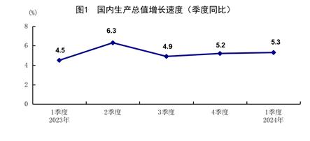 一季度,在以習近平同志為核心的黨中央堅強領導下,各地區各部門認真貫徹落實黨中央、國務院決策部署,堅持穩中求進、以進促穩、先立后破,加大宏觀調控力度,突出做好穩預期、穩增長、穩就業工作,在轉方式、調結構、提質量、增效益上持續用力,政策效應不斷顯現,生產需求穩中有升,就業物價總體穩定,市場信心不斷增強,高質量發展取得新成效,國民經濟延續回升向好態勢,開局良好。