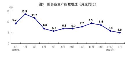 一季度,服務業增加值同比增長5.0%。其中,信息傳輸、軟件和信息技術服務業,租賃和商務服務業,交通運輸、倉儲和郵政業,住宿和餐飲業,批發和零售業增加值分別增長13.7%、10.8%、7.3%、7.3%、6.0%。3月份,全國服務業生產指數同比增長5.0%。其中,信息傳輸、軟件和信息技術服務業,租賃和商務服務業,住宿和餐飲業生產指數分別增長12.7%、8.2%、6.2%。1-2月份,規模以上服務業企業營業收入同比增長12.0%,增速比上年全年加快3.7個百分點。3月份,服務業商務活動指數為52.4%,比上月上升1.4個百分點;業務活動預期指數為58.2%。其中,郵政、電信廣播電視及衛星傳輸服務、貨幣金融服務、資本市場服務等行業商務活動指數高于60.0%。
