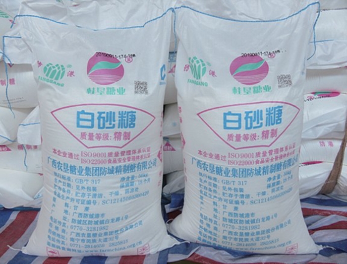 產品特色:“防港”牌精制白砂糖是以原糖汁經先進工藝清凈處理、煮煉精制而成的色澤潔白的高品質結晶糖,有光澤,松散干燥,顆粒均勻,有純正甜味、可口,速溶快,熱量高,易被人體消化吸收,除可直接用于家庭食用外,還可以用來制造高級糖果、高檔飲料以及醫藥工業用。