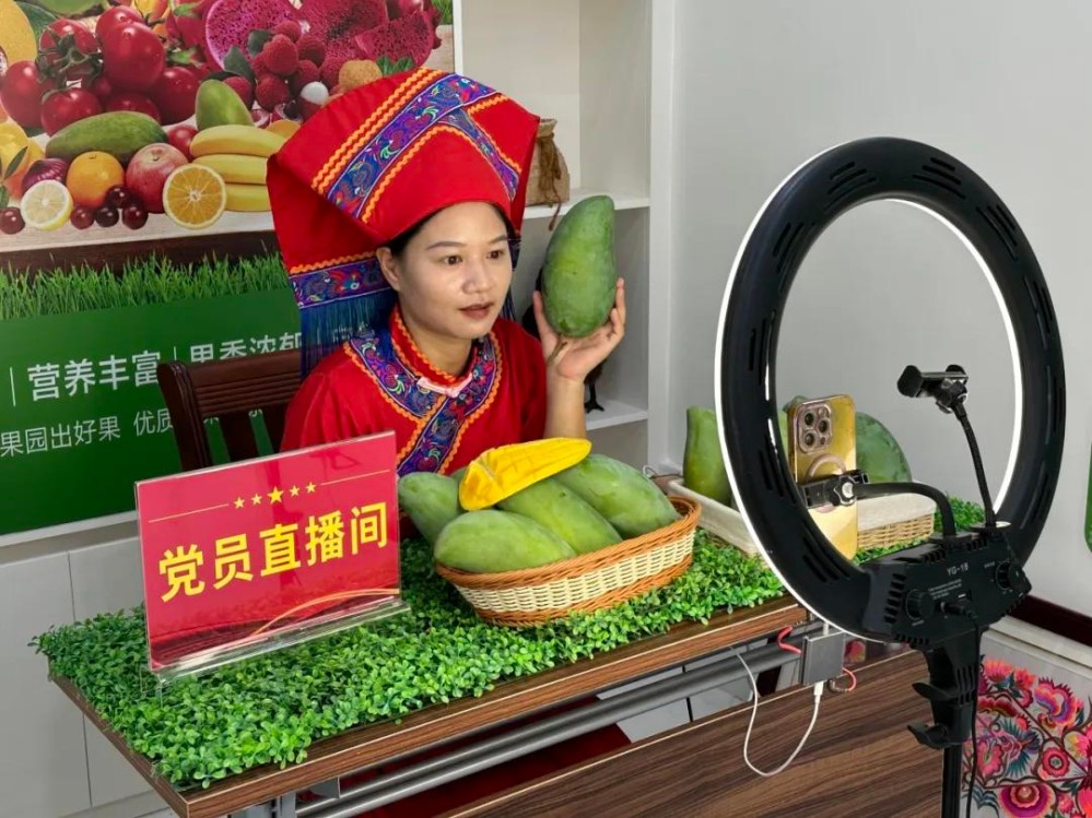 電商直播間,主播們對著鏡頭熱情地介紹著芒果產品,通過一根網線將豐收的喜悅傳遞給更多的人。