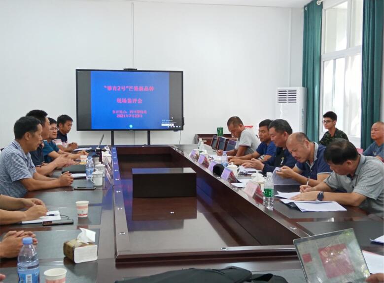 根據攀枝花市農林科學研究院等單位申請,2021年7月22-23日,全國熱帶作物品種審定委員會組織芒果鑒評專家組,在四川省攀枝花市對該單位申報的‘攀育2號’芒果新品種進行了現場鑒評。