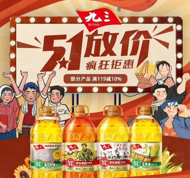 節日期間,進入京東“九三旗艦店”平臺,消費者能看到多種多樣的產品,貨源充足,同時還有限時秒殺、滿減等促銷活動。九三食品股份有限公司針對線上購物訴求越發凸顯的情況,將線上京東、天貓、拼多多等電商平臺作為銷售主陣地,并通過天貓頭部主播帶貨、抖音打通直播鏈、店鋪自播等方式活化營銷模式,提升銷量,提高品牌知名度。僅5月1日,電商平臺銷售額超50萬元。根據訂單,“五一”期間共生產包裝油25萬箱, 8條生產線全線開機加快生產,成品付貨高效有序。