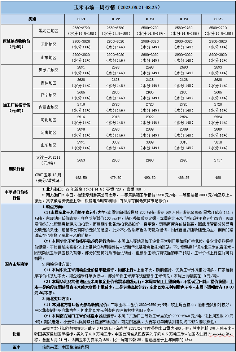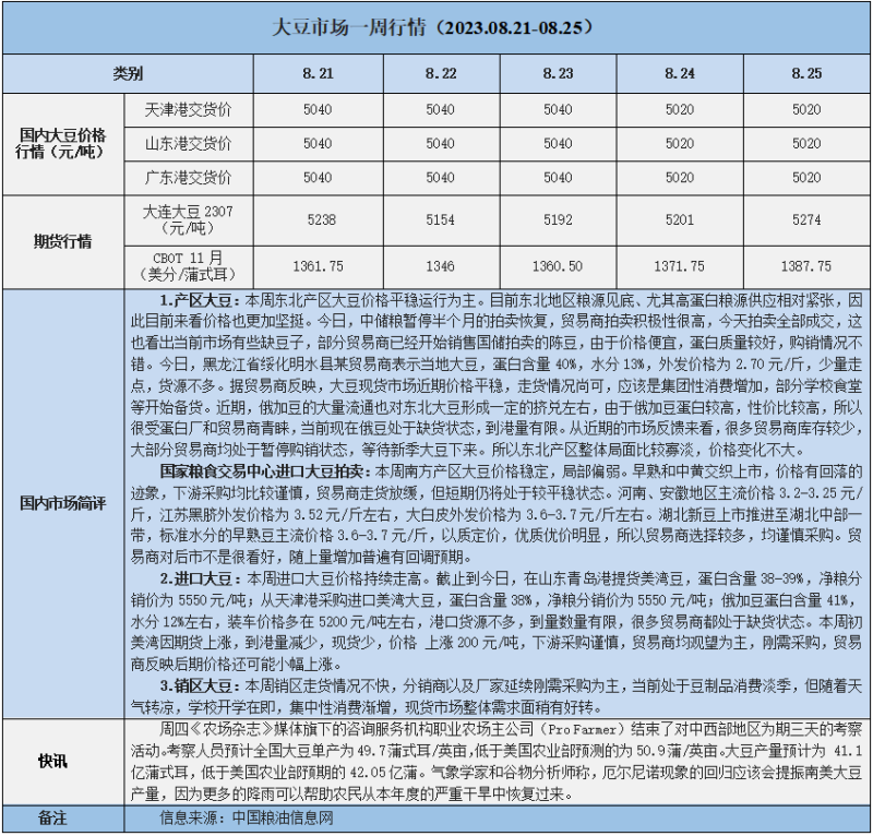天然橡膠、大豆、玉米市場(chǎng)一周行情(2023.08.21-08.25)