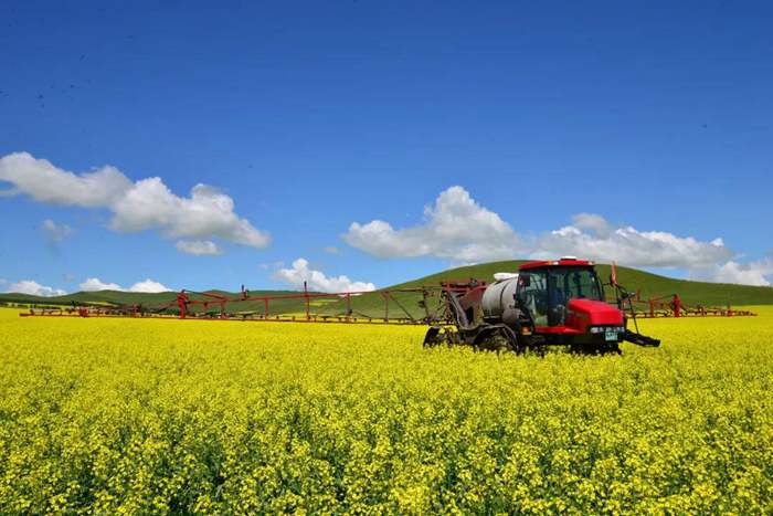 《你走起來真好看》 呼倫貝爾農(nóng)墾拉布大林農(nóng)牧場(chǎng)有限公司自走式噴藥機(jī)作業(yè)。王浩 攝