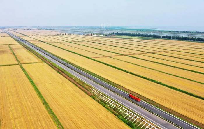 《沃野流金》 安徽農(nóng)墾華陽河農(nóng)場(chǎng)高標(biāo)準(zhǔn)農(nóng)田種植的小麥進(jìn)入成熟期,處處風(fēng)景如畫。李龍 攝