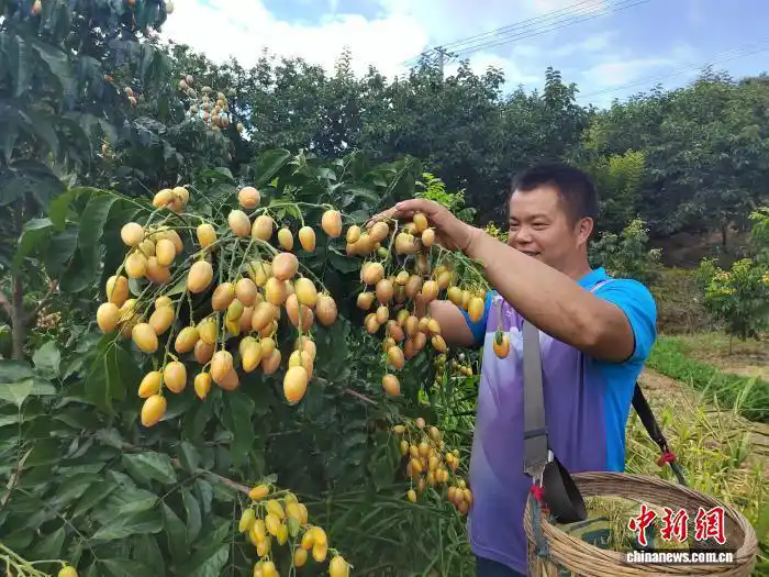 中新網(wǎng)桂林7月28日電(涂昆 黃潔萍)夏日蟬鳴,金果飄香。近日,廣西桂林平樂(lè)縣大發(fā)瑤族鄉(xiāng)的黃皮果進(jìn)入集中采摘期,連綿的山丘上,低矮的黃皮果樹(shù)郁郁蔥蔥,一串串厚重的果實(shí)已開(kāi)始由墨綠轉(zhuǎn)向金黃,在陽(yáng)光下閃爍著誘人的光澤。酸甜可口的黃皮果正趁著高溫天氣“搶鮮”上市,成為當(dāng)季“熱寵”。