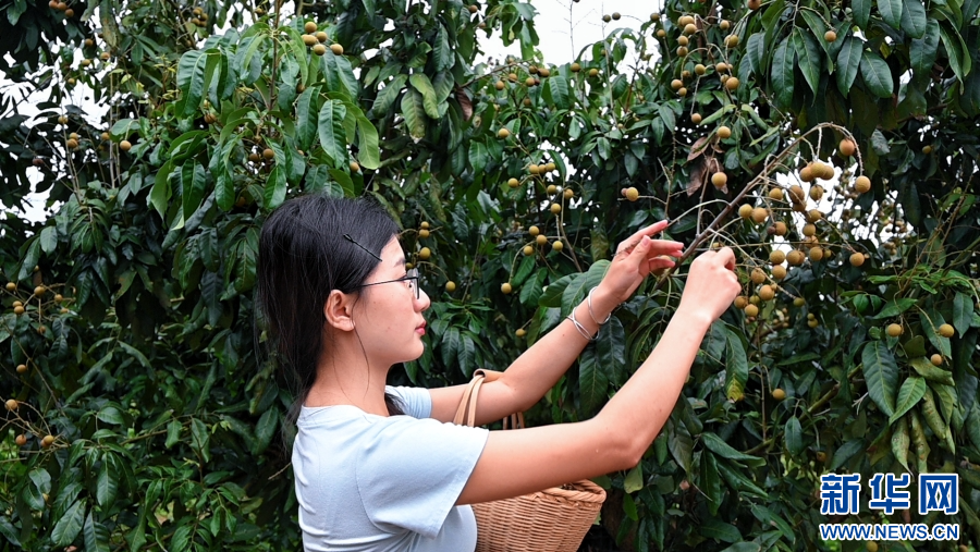 采摘龍眼(8月13日攝)。新華網發(茶新慧 攝)