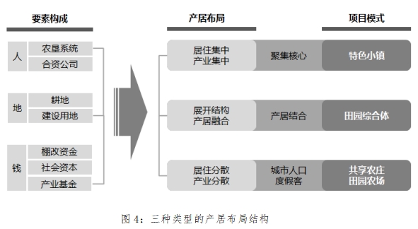 對(duì)于農(nóng)場(chǎng)相對(duì)集中的墾區(qū),可以打造一種展開(kāi)結(jié)構(gòu)的產(chǎn)居融合,形成以田園綜合體為載體的發(fā)展模式。