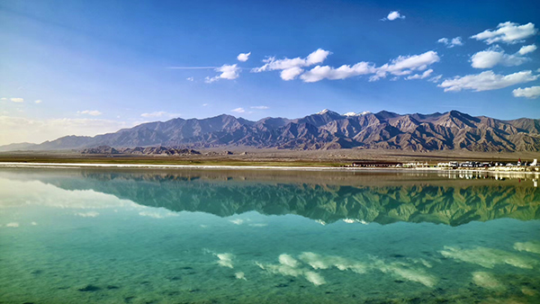 大柴旦翡翠湖位于青海省海西蒙古族藏族自治州境內,形態迥異、深淺不一的鹽池宛如一塊塊晶瑩剔透的“翡翠”。約6平方公里的“翡翠湖”名為大柴旦湖,是原大柴旦化工廠鹽湖采礦隊采礦區,經多年開采形成采坑,變成了如今美麗的“翡翠湖”。站在湖邊,宛若鏡面般的湖面倒影著藍天白云和皚皚雪峰,宛如仙境。