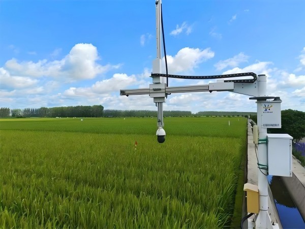 在黑龍江墾區,智慧農業技術被應用到了方方面面。在位于三江平原上的北大荒農業股份有限公司七星分公司,水田地塊里,一臺葉齡智能診斷儀被安裝在田埂上,一根伸長的金屬臂將攝像頭伸入田間。