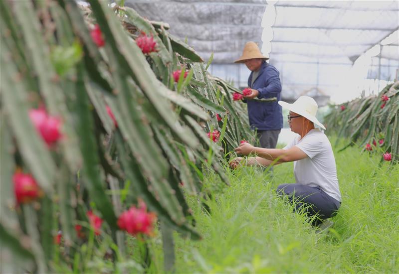 時(shí)下正是火龍果成熟上市的季節(jié),宜秀區(qū)五橫鄉(xiāng)火龍果種植基地的果農(nóng)搶抓時(shí)令采收火龍果,供應(yīng)市場(chǎng)。近年來(lái),宜秀區(qū)推進(jìn)農(nóng)旅融合,將鄉(xiāng)村振興與生態(tài)旅游、休閑采摘深度結(jié)合,繪就一幅農(nóng)業(yè)強(qiáng)、農(nóng)村美、農(nóng)民富的鄉(xiāng)村振興畫卷。(記者 江勝 通訊員 張佳 攝)