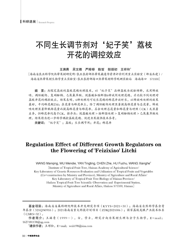 不同生長調節劑對‘妃子笑’荔枝開花的調控效應